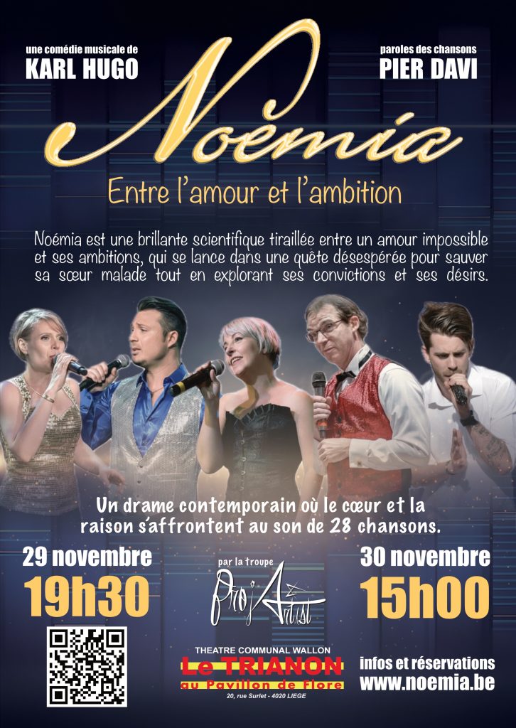 Créée par le compositeur-librettiste Karl Hugo et le parolier Pier Davi, la comédie musicale Noémia est une œuvre originale d’envergure avec ses 28 chansons, un premier rôle féminin fort et un livret qui aborde des sujets actuels, flirtant parfois même avec l’anticipation.